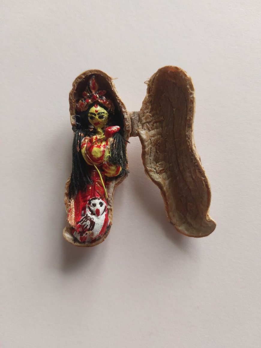 মাত্র ৪ সেন্টিমিটার সাইজের একটি বাদামের খোলের ভেতর গড়ে উঠেছে লক্ষ্মী মায়ের প্রতিমা। কাজ এতটাই সূক্ষ্ম ও নিখুঁত যে চোখে না দেখলে বিশ্বাস করা কঠিন। ইন্দ্রনীলবাবুর হাতের কারুকার্য দেখে মুগ্ধ হয়েছেন শিল্পপ্রেমী থেকে সাধারণ মানুষ সকলেই।