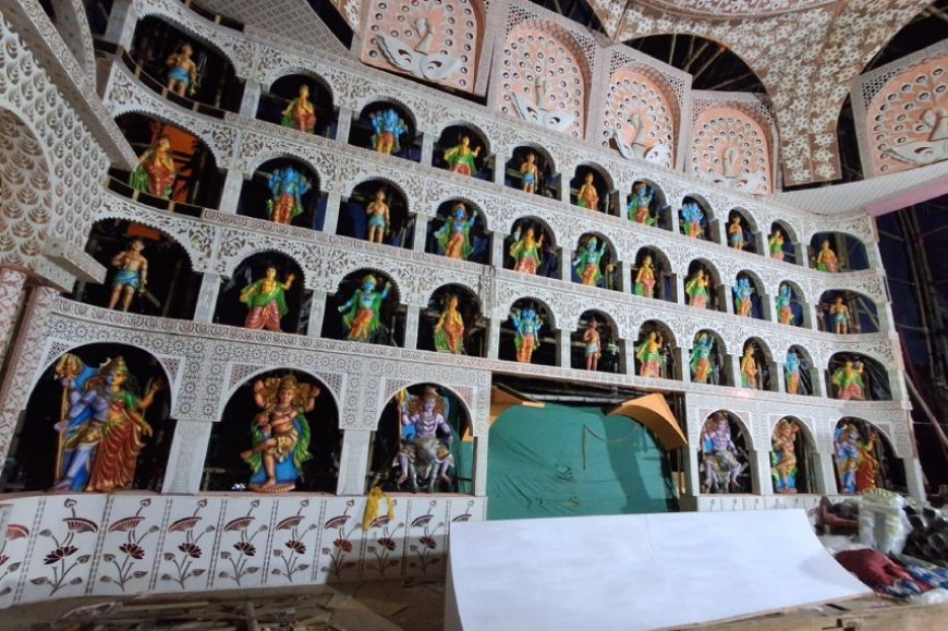 এই মণ্ডপ সজ্জায় পূর্বেও দেখা গেছে রামেশ্বরম মন্দিরের আদল কিংবা মীনাক্ষী মন্দিরের আদল। আর এই বছর ২০২৫ এ দাঁড়িয়ে তার কোনও পরিবর্তন হয়নি বলেই দাবি পূজা কমিটির কর্মকর্তাদের। কারণ বর্তমান বছরেও অন্যবারের মতো এবারের মণ্ডপসজ্জা ভারতের প্রাচীন ইতিহাসকে স্মৃতিচারণ করে। মূলত গত বছর ২০২৪ সালে মণ্ডপ সজ্জিত হয়েছিল পুরীর জগন্নাথ দেবের মন্দিরের আদলে। আর এই বছর ২০২৫ সালে দক্ষিণের তিরুপতি মন্দিরের নিচে অরুণাচল পাহাড়ে শিবের মন্দিরের আদলে তৈরি হচ্ছে এ বছরের মণ্ডপ নির্মাণ।